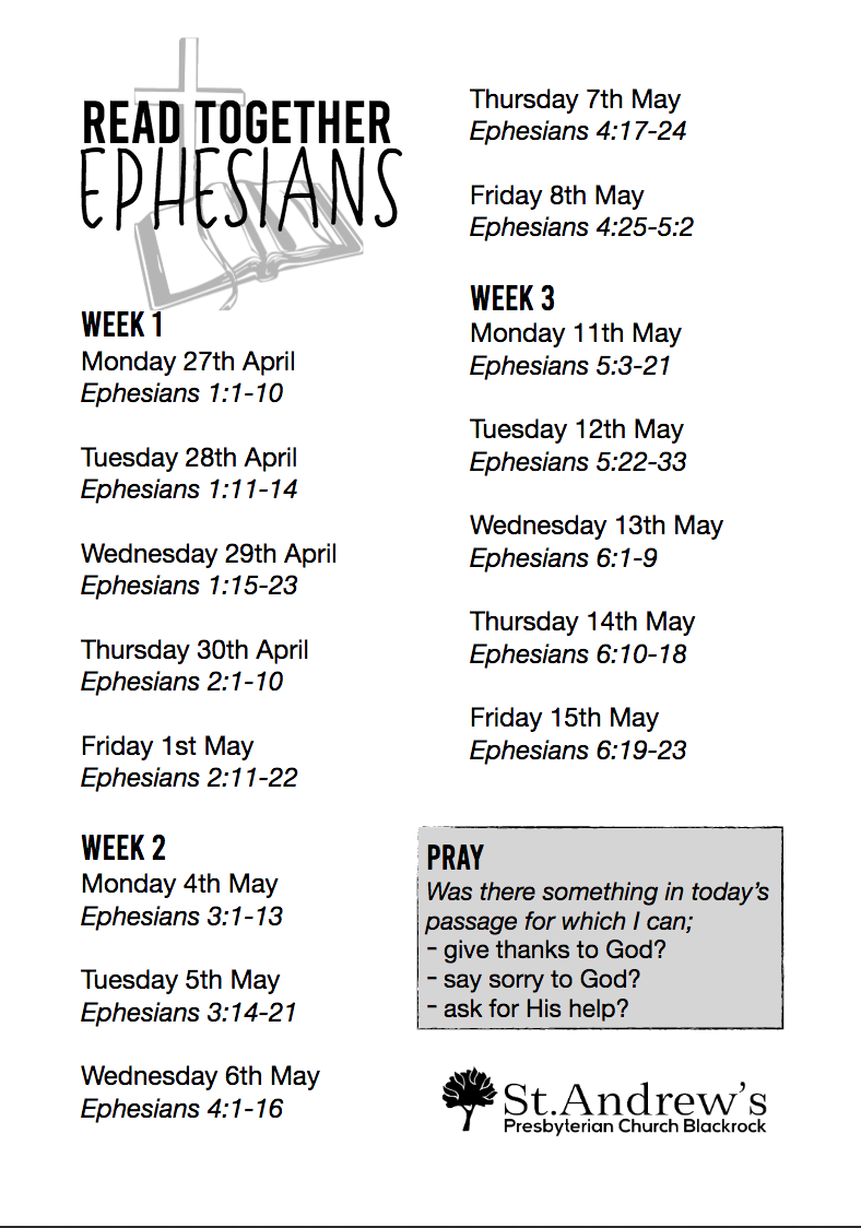 After you’ve read each day’s verses ask yourself, was there something in today’s passage for which I can;