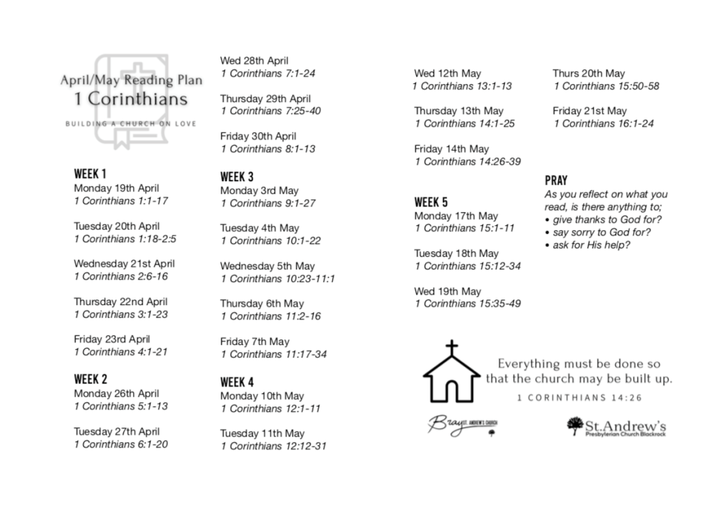 From Sunday 16th May we will be re-opening our buildings for in-person service. More details will be available during the week, or sign up to receive our weekly emails.