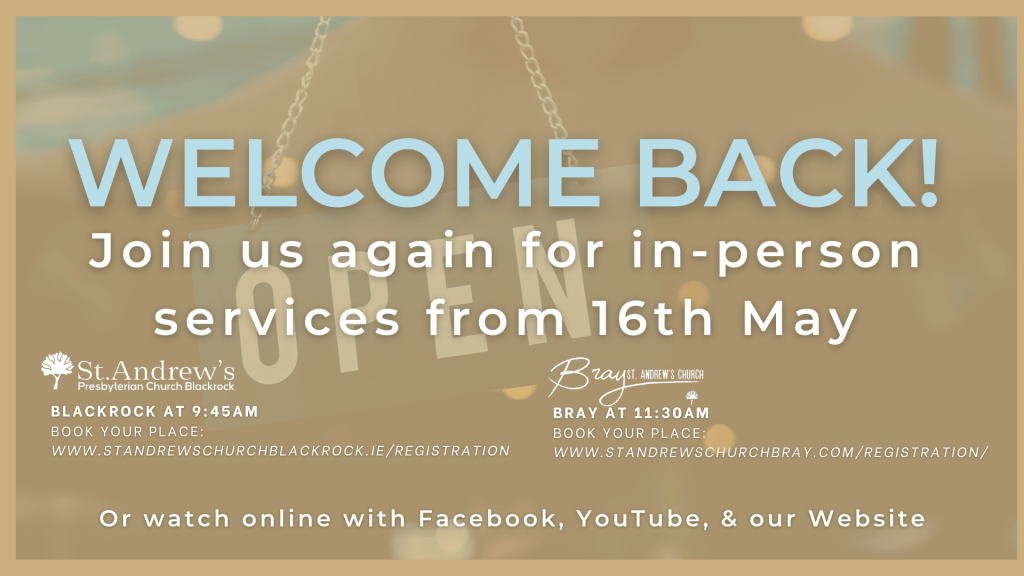 Church reopening for in-person services next Sunday the 16th May! Register you place